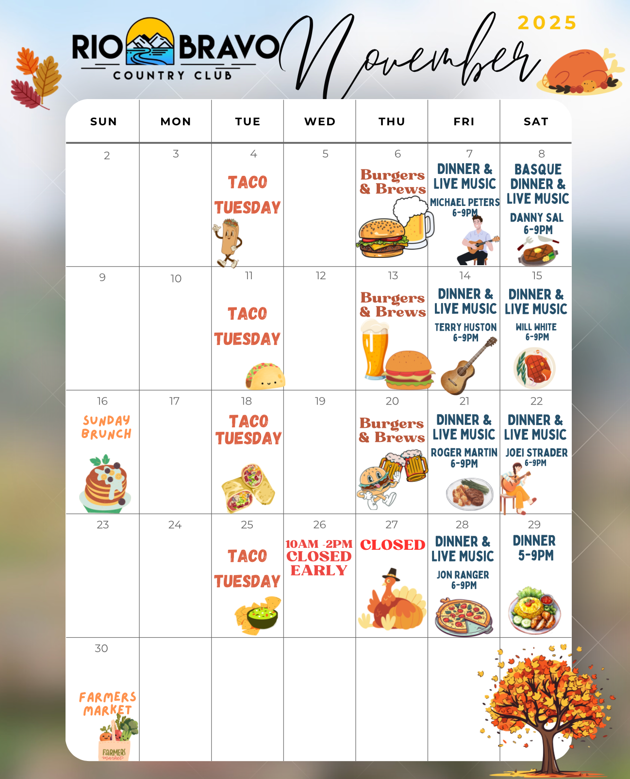 🧺 Farmers Market — Sunday, Nov 30 | 9am–1pm. Shop local vendors for fresh produce, baked goods, handmade crafts, and more.